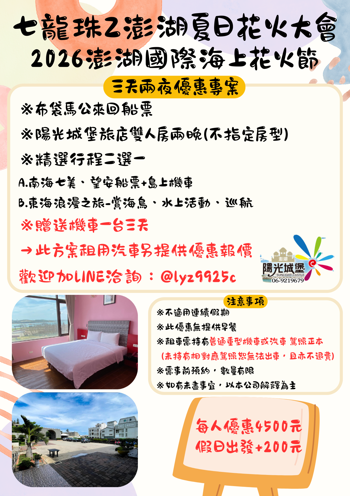 澎湖民宿 陽光城堡 海景花園渡假村 - 訂房專線:06-9219679 電子信箱: